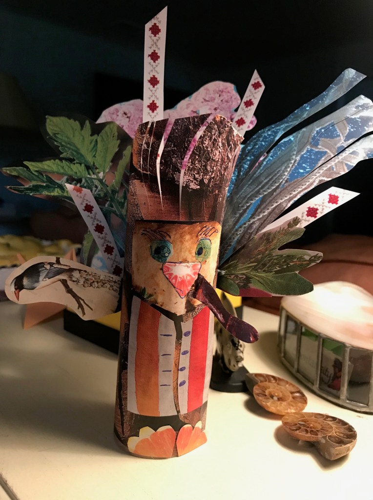 In art-teacher mode, I whip up a model paper roll turkey to inspire my three oldest grandchildren. (Two-year-old Charlie will be happy to play on the floor with an empty roll.) With pride, I text pictures of my model turkey to family and friends. They ooh and aah appropriately, much in the manner of a proud parent attaching a child’s work to the front of the refrigerator.