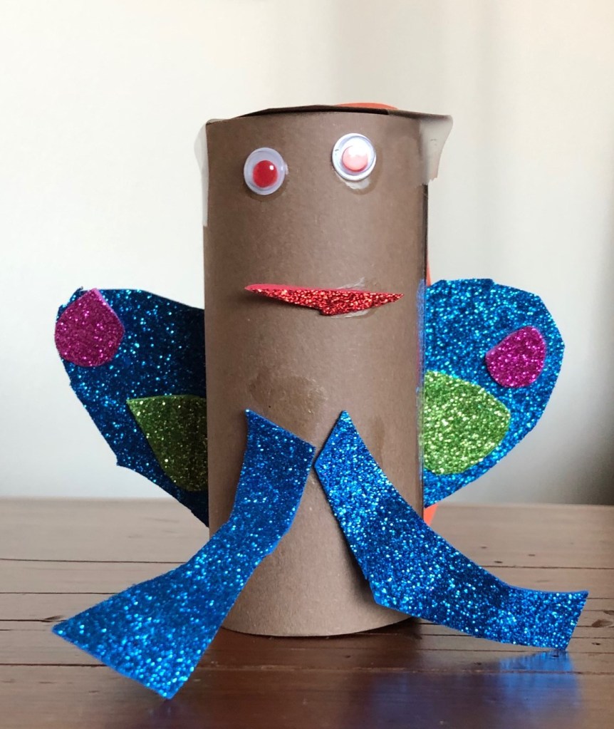 Meanwhile, I’m slinging my hot glue gun, attaching googly eyes and wings and tail feathers fashioned out of pipe cleaners for Clara and Michael.