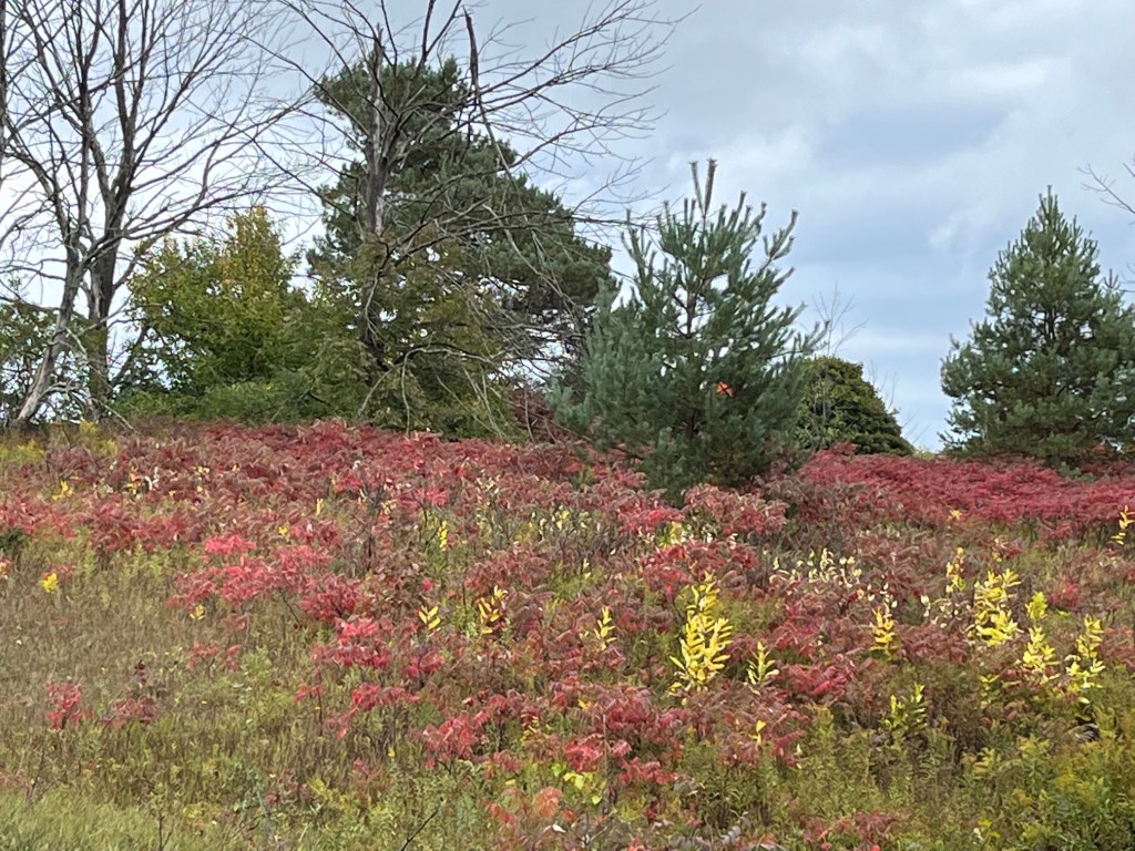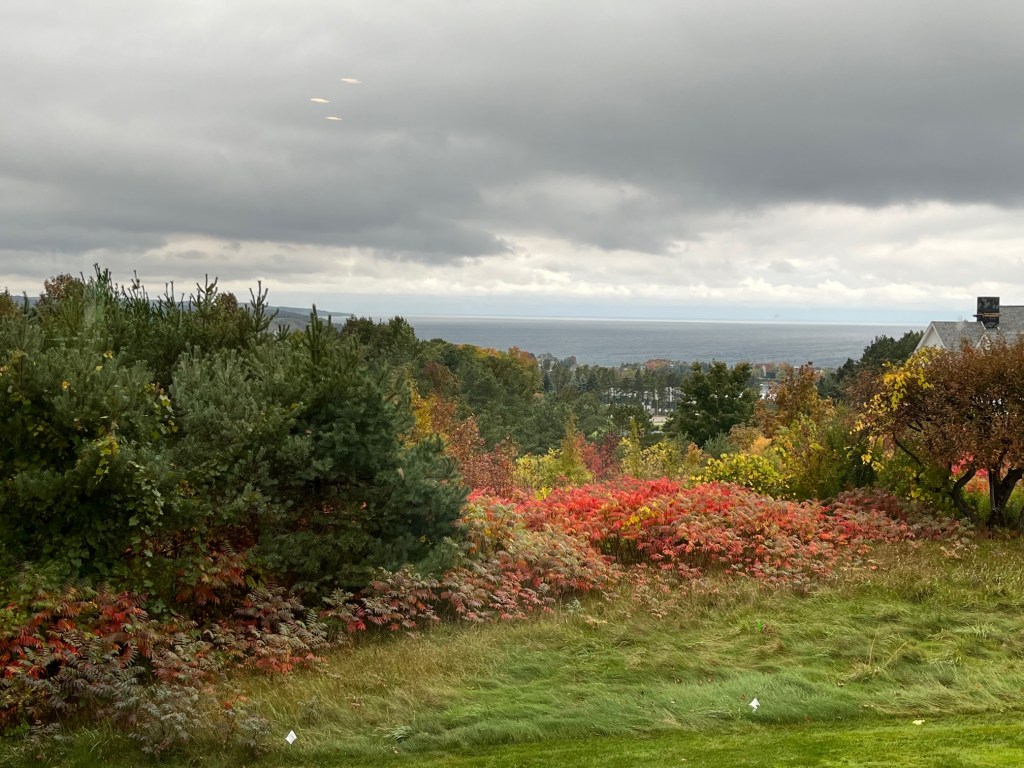 I’ve been in Petoskey, Michigan, since Tuesday, and I’ve been walking Ziva, my dog who came with me, and Bogey, my mother’s dog. Petoskey, nestled on the eastern side of Lake Michigan, is beautiful anytime of the year, but October is my favorite time to visit. The weather, scenery, and vegetation are a blend of southeast Wisconsin, where I grew up, and northwest Wisconsin, where I live by Lake Superior. Coming here is like returning to the fields and woods of my youth, while almost feeling like I haven’t left home because Lake Michigan keeps me from missing Lake Superior.