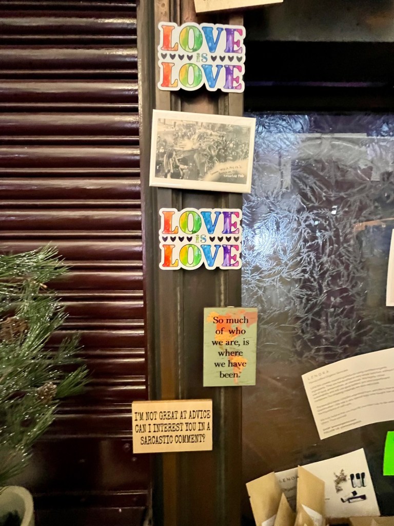 Throughout the store, magnets are on display for sale. Find the words that capture your Valentine’s personality.