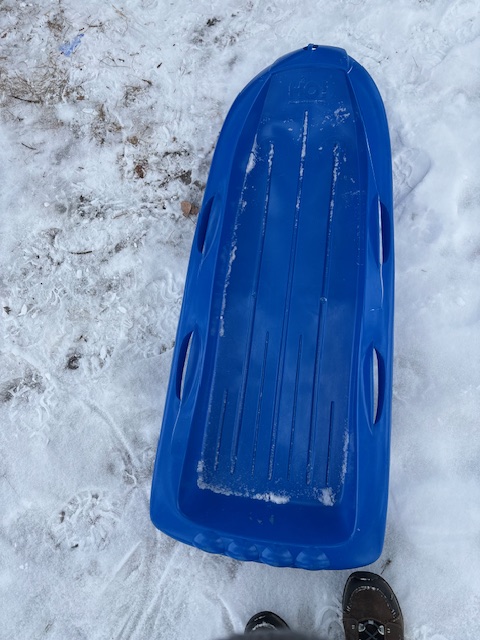 I’d been the one with the jaded heart, but my city’s parks & rec department had faith in its young citizens. “Look, Evan,” I said, pointing at the sign, “you were right.” My grandsons mostly used their own sleds, but occasionally borrowed one of the saucer sleds from the rack.