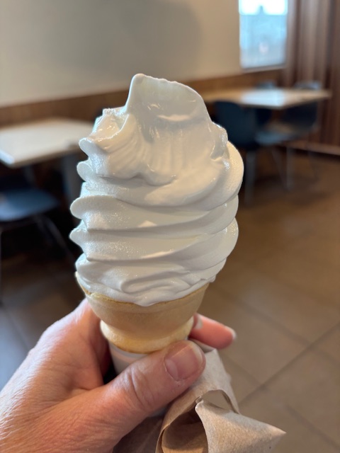 I looked at my grandkids, and asked, “Would it be okay if we all got the $1 ice cream cones and ate them here? Afterward we can order our lunch to go and eat it at home? So, Ziva doesn’t have to be in the car by herself for so long?”