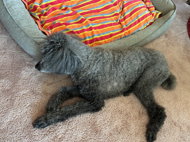 I also have a fifteen-year-old poodle, Ziva, with multiple myeloma. She is in the early stages of the disease, but she also has some other health issues. Her vision and hearing are iffy, she has some dementia-like issues, and her osteoarthritis makes her mobility a bit sketchy. But she still enjoys a very short walk and loves car rides.