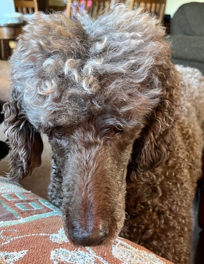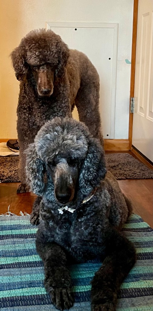 Cabela, my fourteen-and-a-half-year-old standard poodle, has been moving slowly over the past two days. But she has a good excuse. She treed a big raccoon on Friday evening. Then she stood under the tree and barked at it, warning it to stay put. She barked some more to alert my husband that a big raccoon was up the tree, but that he didn’t need to worry about it. She had it all under control.