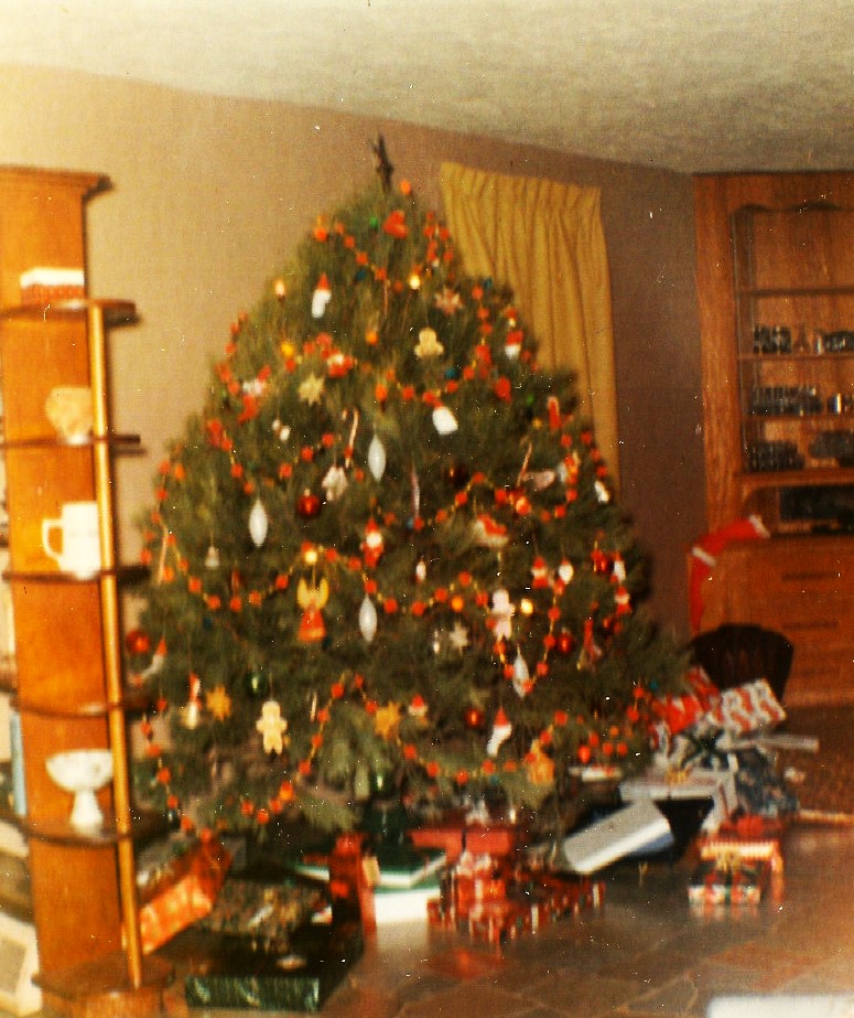 One of mom’s trees before she started putting them in front of the mirrored wall in the living room. Unfortunately, I have no pictures of the later Christmas trees.